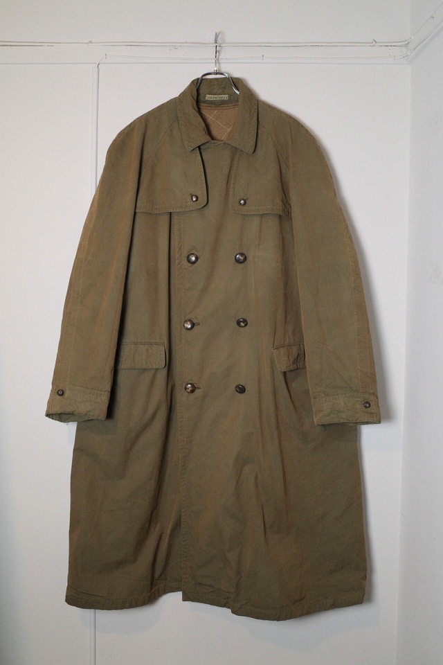 1950年代頃と思われるダブルブレストのコート。 こちらは初見で、ブランドタグなども無い、用途なども謎のコートです。 おそらくヨーロッパで街着として使われていたコートなのではないかと考えます。 タマムシっぽい光沢のある生地で、スーパーロングの丈感も相まって、とてつもない迫力。 裏地も非常に上品で贅沢、素晴らしいの一言です。 ライナーは着脱可能ですが、ジップの端が外れやすいです。ジップ自体は生きているので使用可能です。 〈size〉 裄丈:94cm 身幅:65cm 着丈:120cm 日本サイズで言うXLサイズ程度 〈condition〉 ダメージ特にダメージ汚れなく良好です。 ライナーのジップ端が外れやすくなっていますが、着用に問題はありません。 −−−−−−−−−−−−−−−−−−−−−−−−−−−−−−−−−− イメージと違うなどの理由での返品は行っておりません。 採寸に関して、細心の注意をはらい計測しておりますが、多少誤差が生じる可能性があります。 神経質な方のご購入はご遠慮ください。 古着屋ヴィンテージにご理解の上、ご購入をお願いいたします。 −−−−−−−−−−−−−−−−−−−−−−−−−−−−−−−−−−