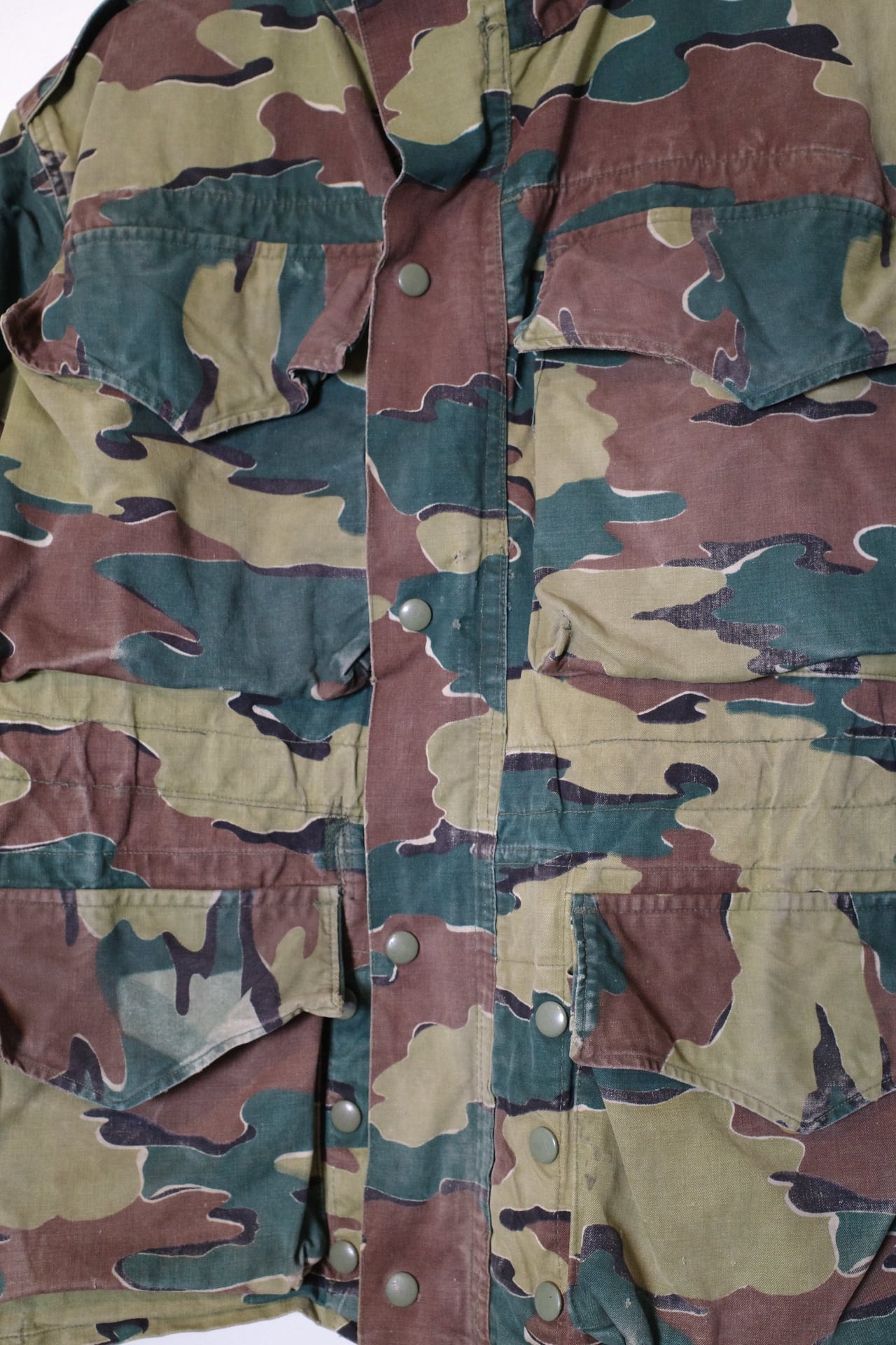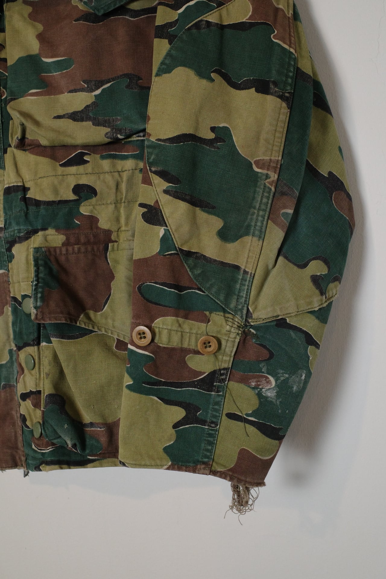 デジカモやリザードカモなどのいわゆる迷彩といった感じではなく色使いもファッショナブルで非常に街着として使いやすいと思います。