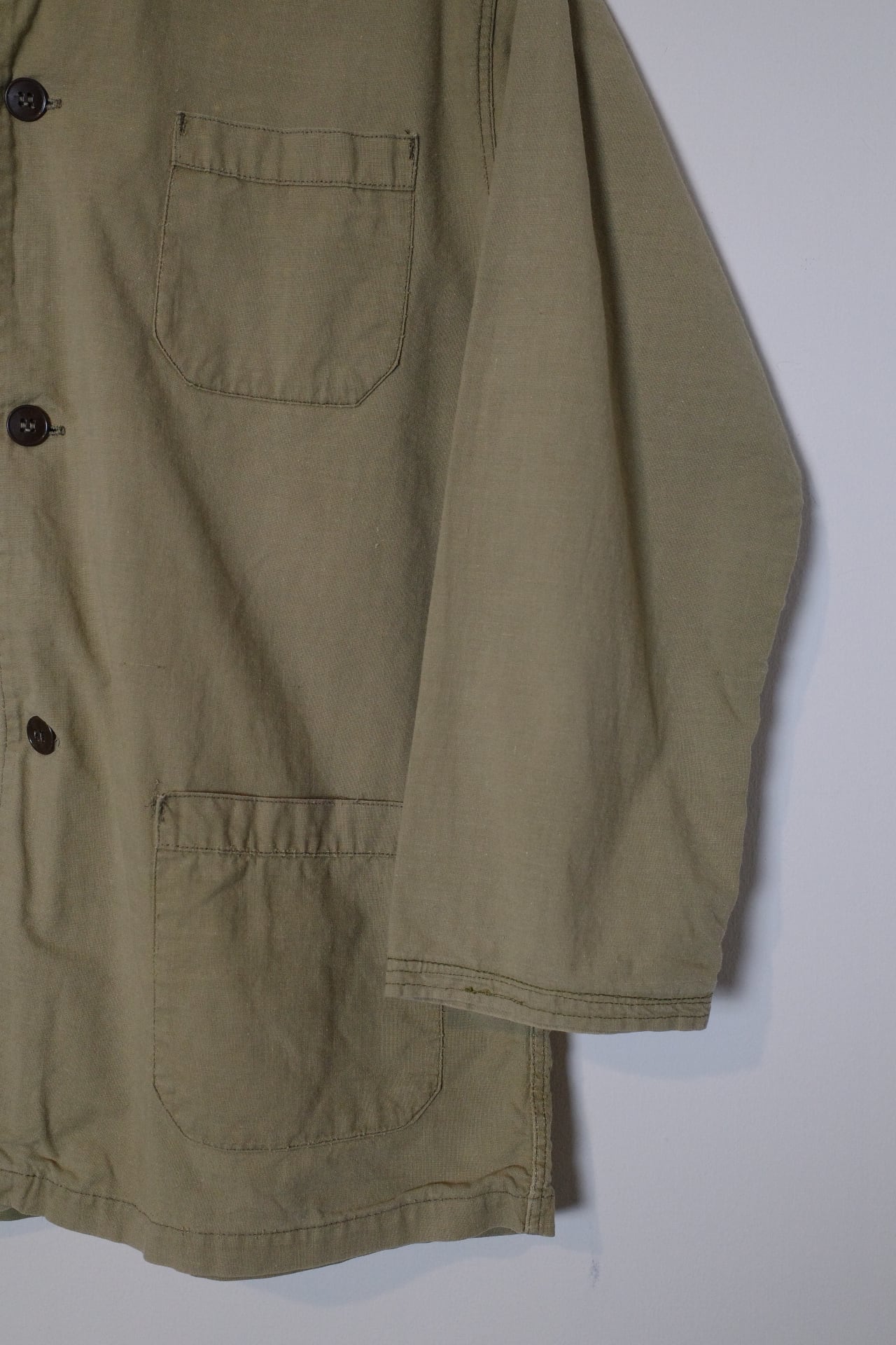 コットンに少しリネンが混じったかなり薄手のジャケットで、非常に軽量で着やすいです。