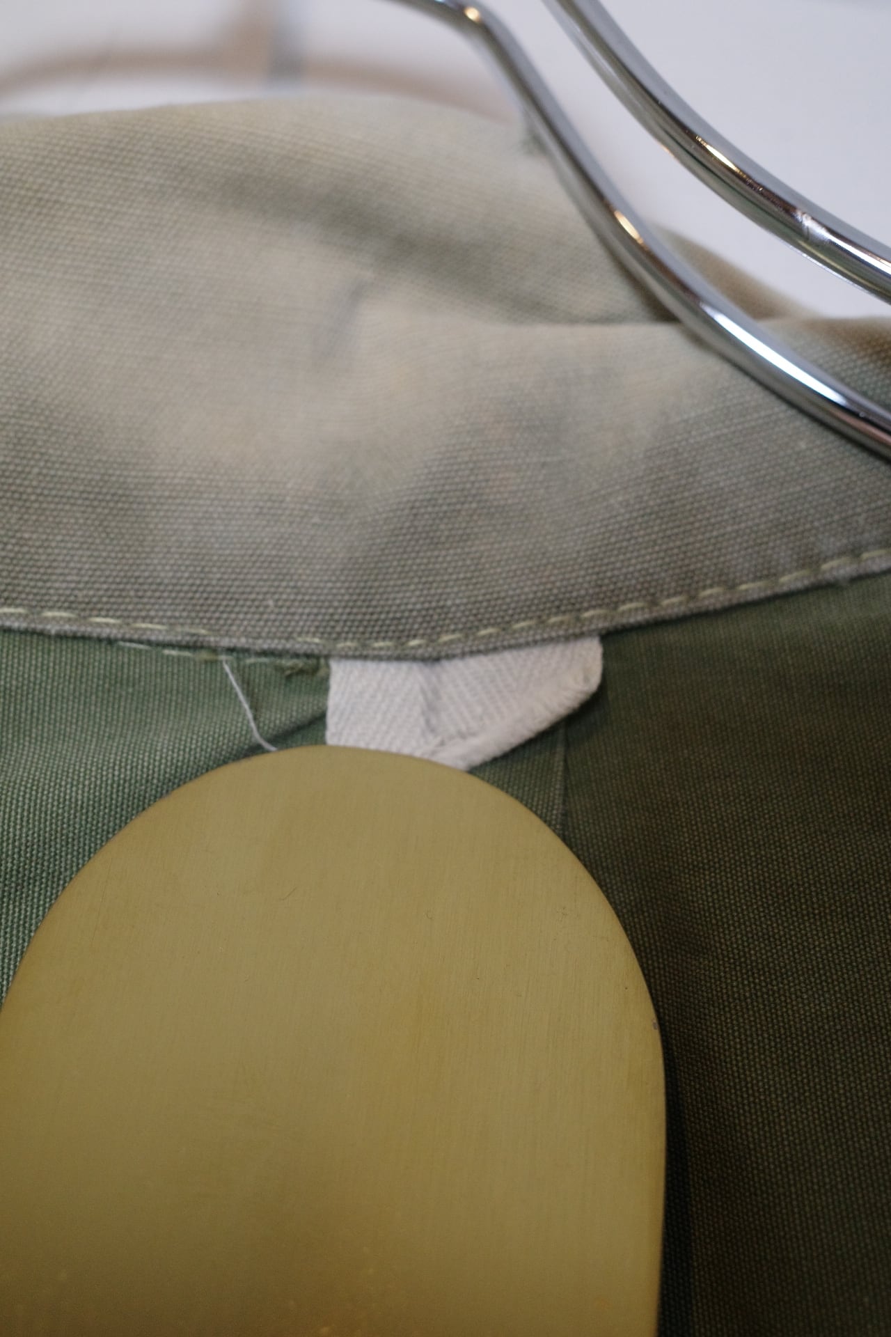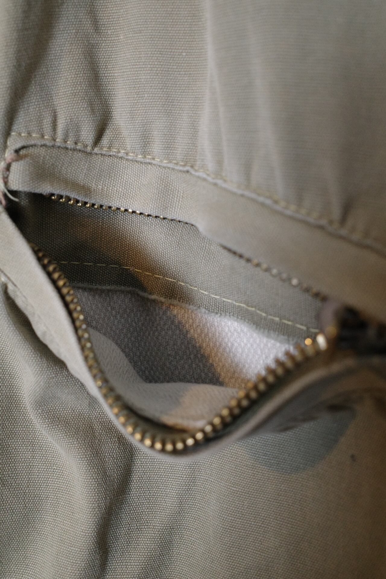 裏地にライナーが取り付けられるフックがありますので、おそらく冬用に使われていた物で、故に柔らかい生地を採用されていたのかと考えると面白いですね。