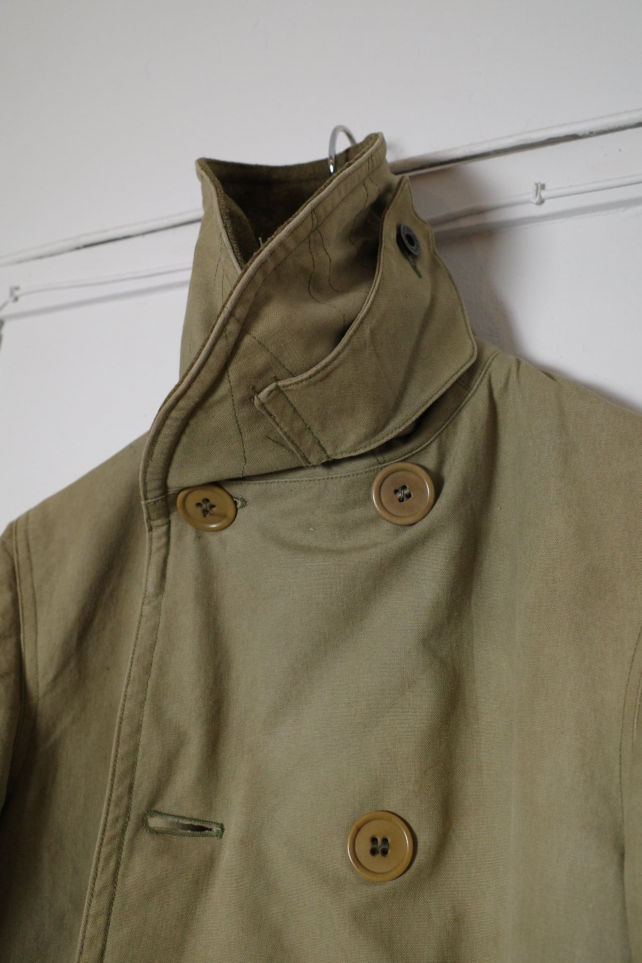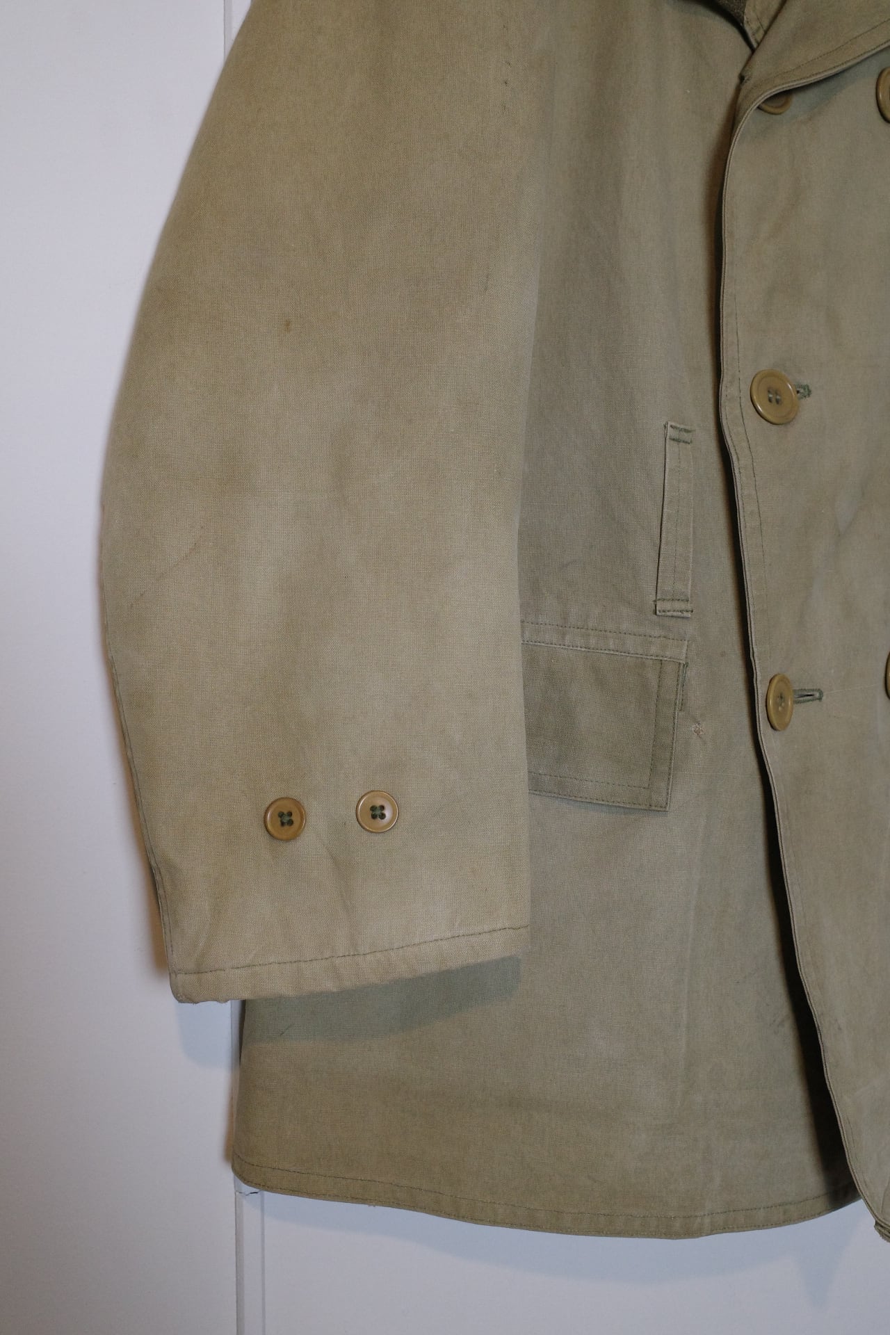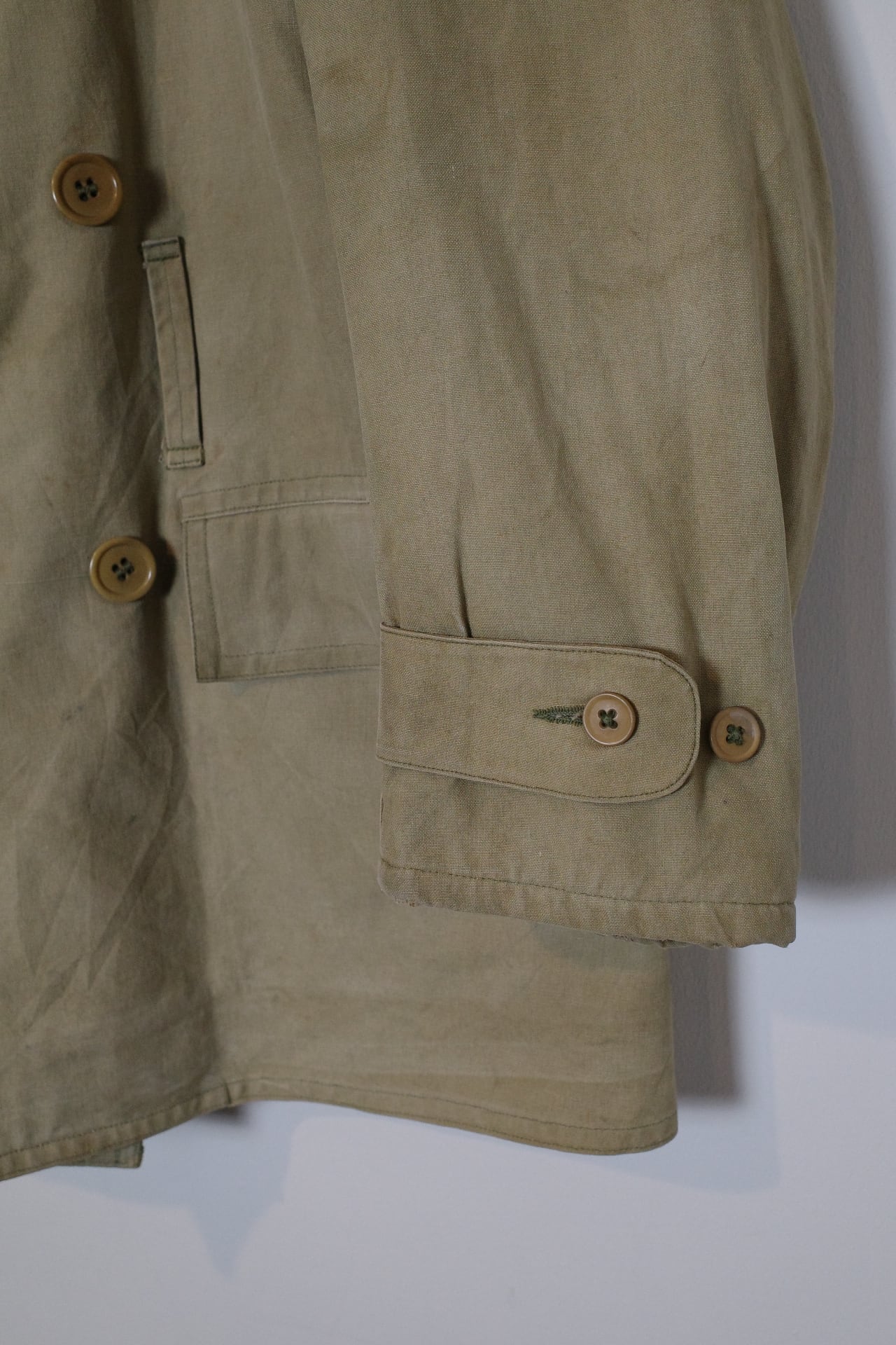 お好きな方の多いダブルブレストで表地はキャンバス地で、裏にウールが貼られており、当時のアメリカの屈強さが伺える男らしいアウターです。