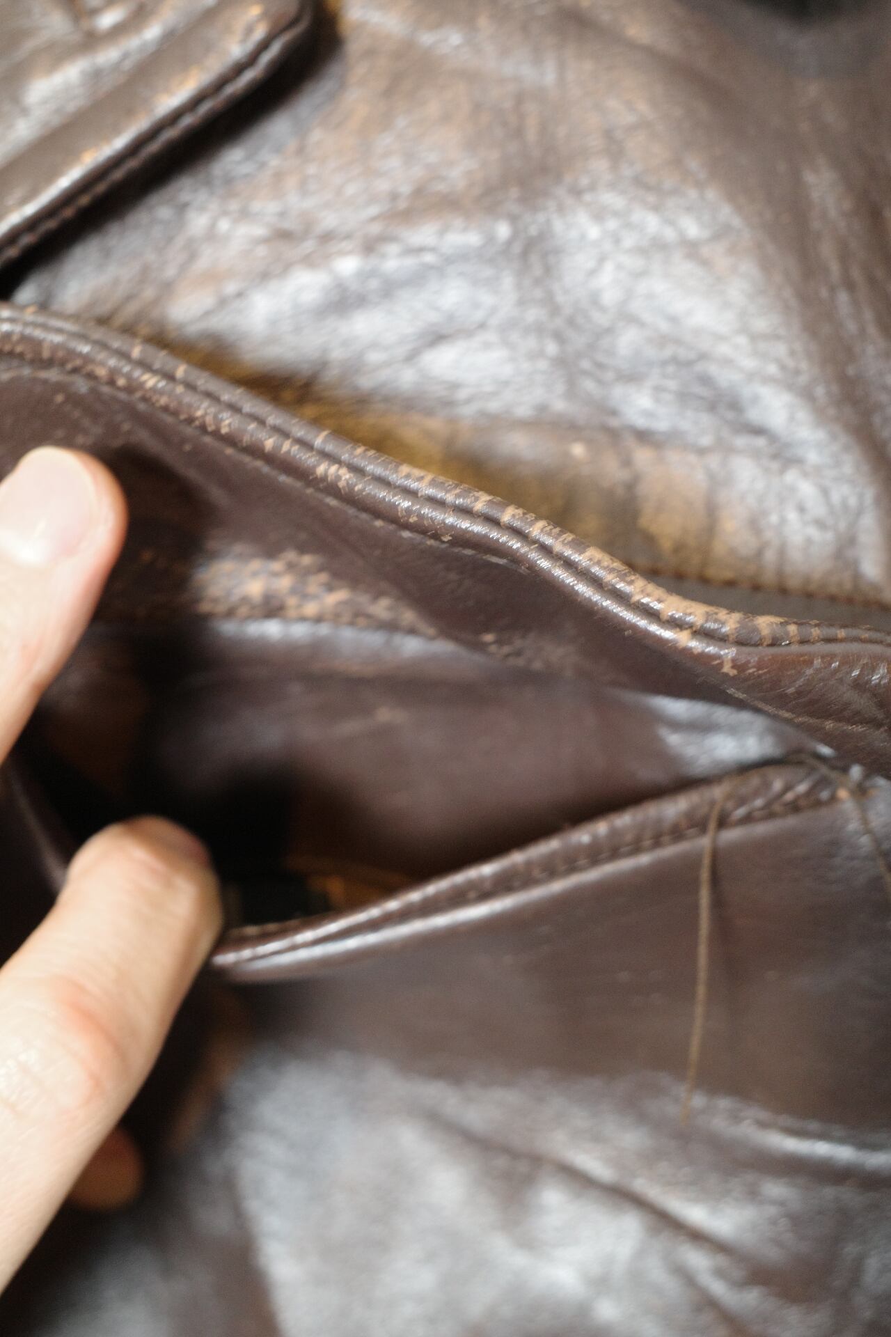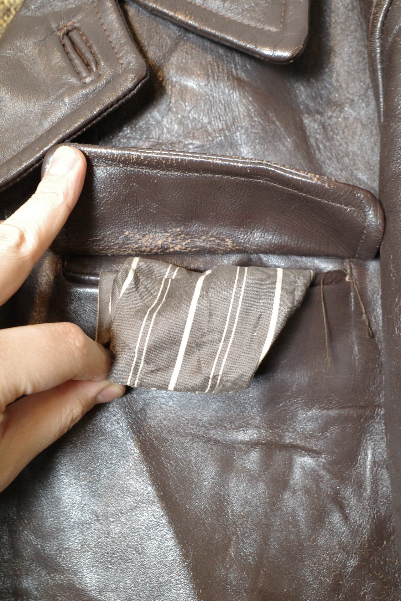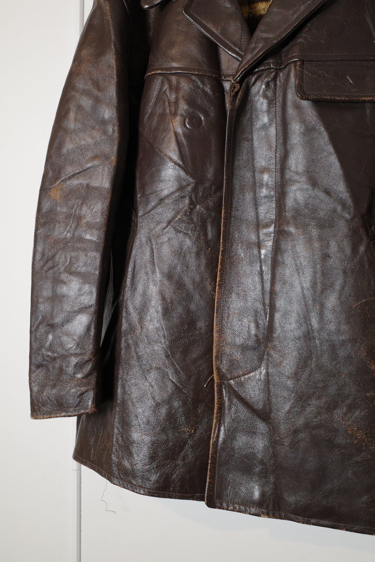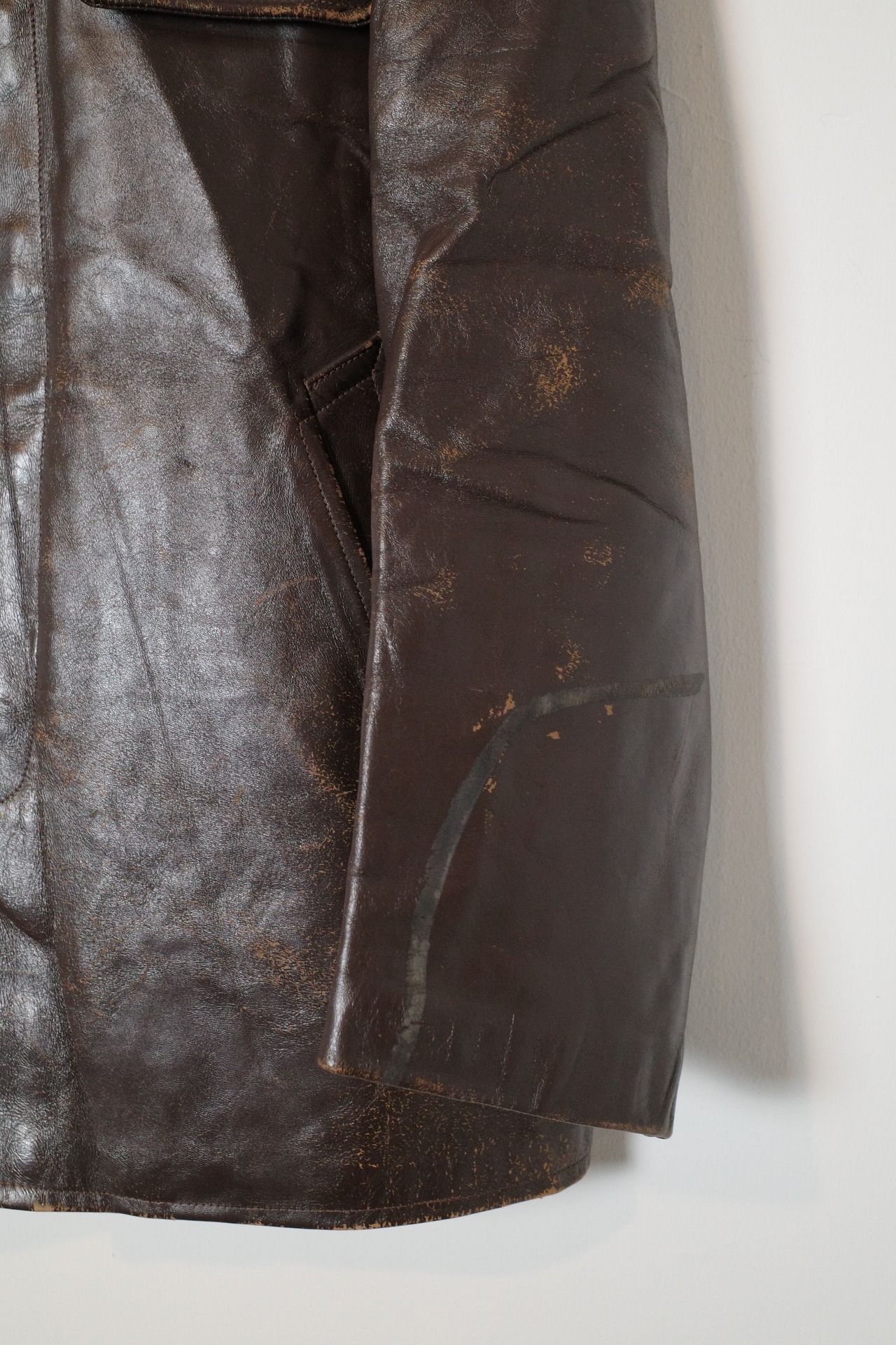 おそらくワークジャケットとして使用されていたものだと思われますが、ハードな使い込みにより表面が擦り減ってやれ感が出ております。