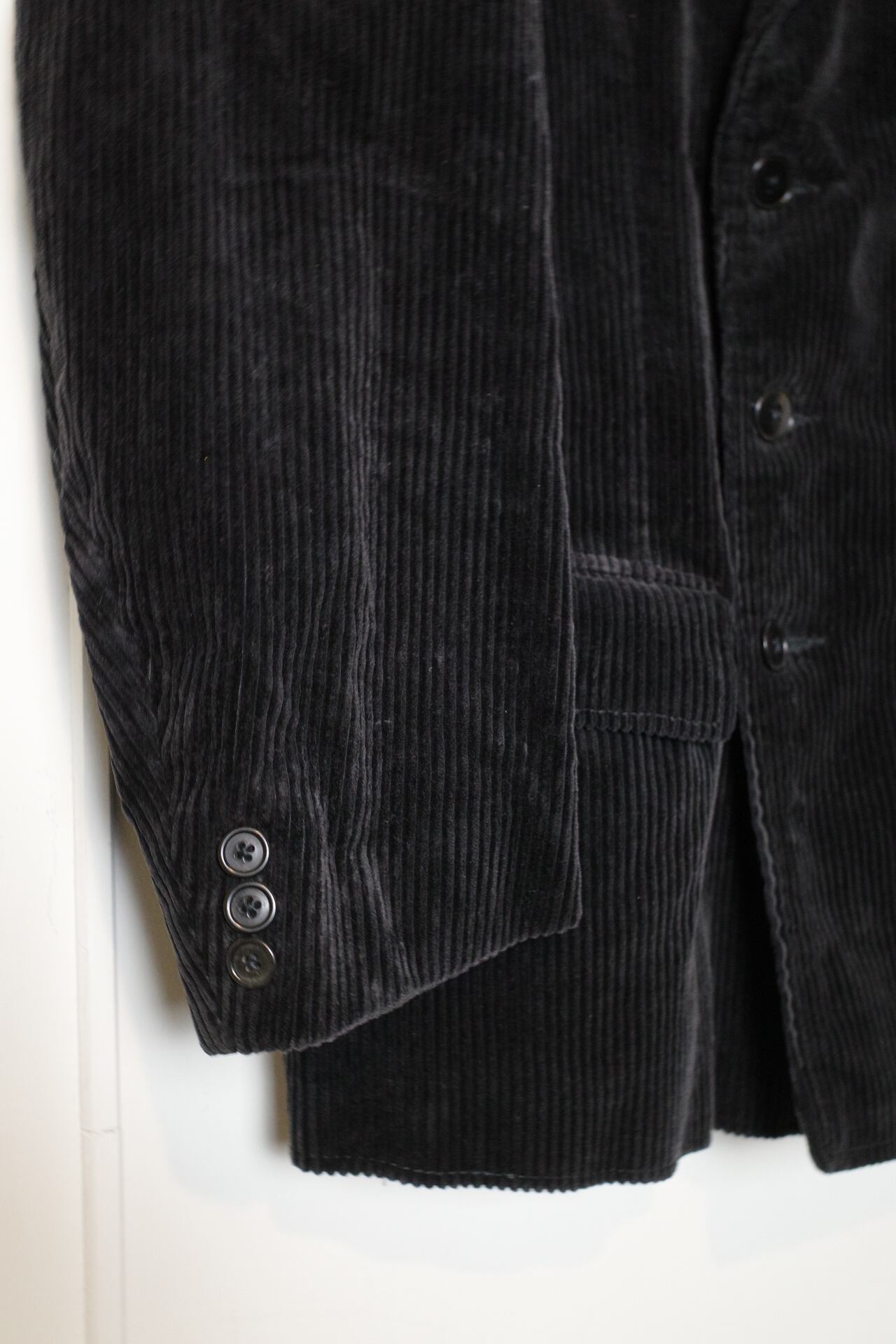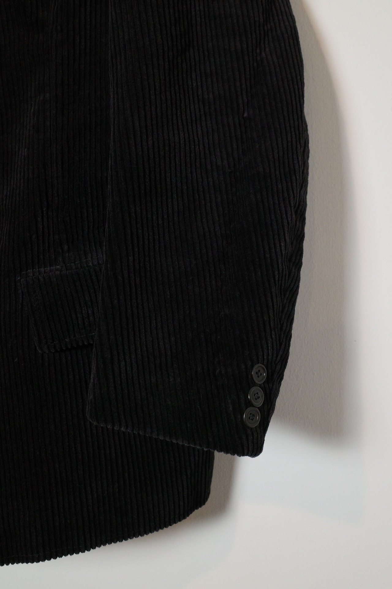 太畝のコーデュロイで、ダブル、ブラック。