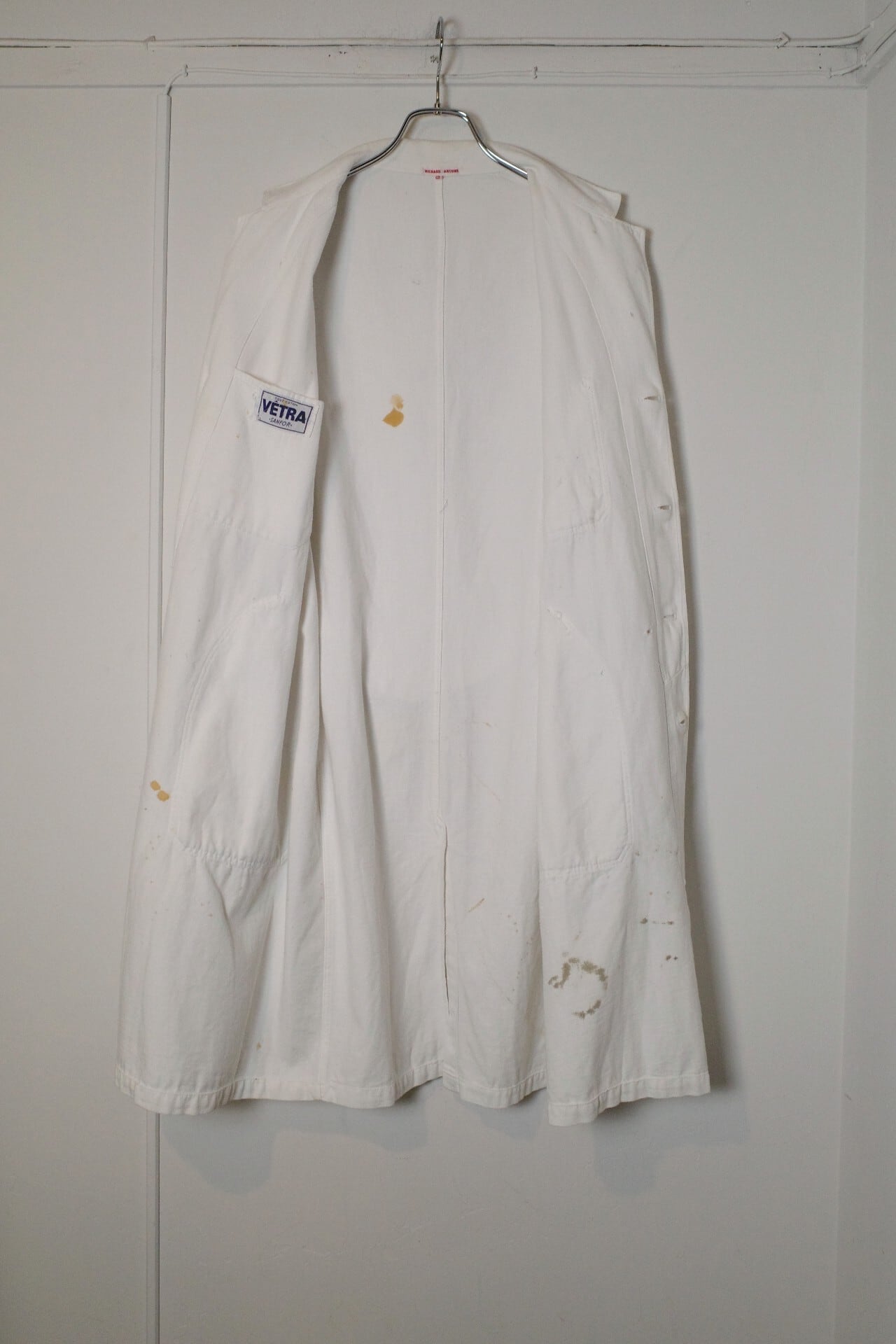アトリエコートとして認知されているこちらのワークコートですが、こちらの個体はおそらく絵描きではなく仕事用に使われていたワークコートだと思われます。